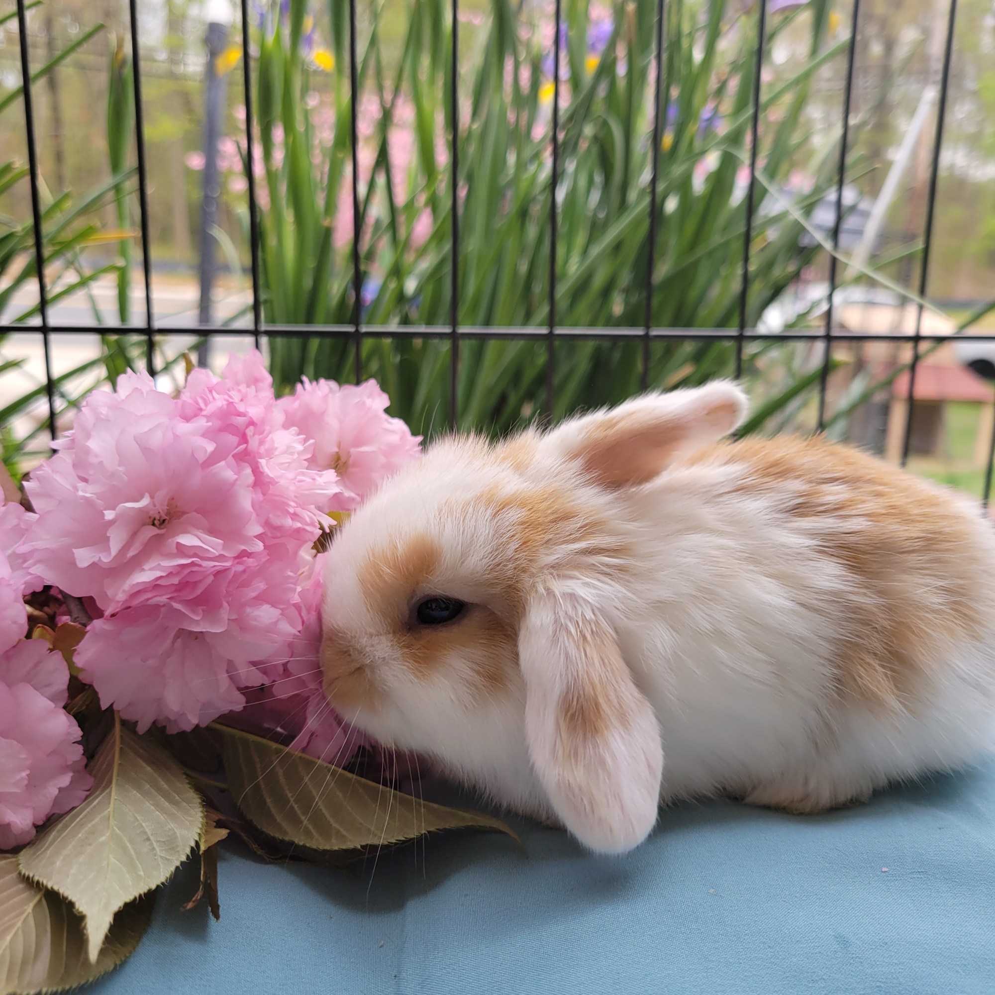 4-28-21: If you sit down Apricot will hop in your lap! This bunny loves a nice long pet session. As soon as you start petting him he turns into a little soft pile of mush and will take as much love as you want to give him! While I work at my PC he likes to place his little head on the top of my foot, he really loves physical contact and touch.