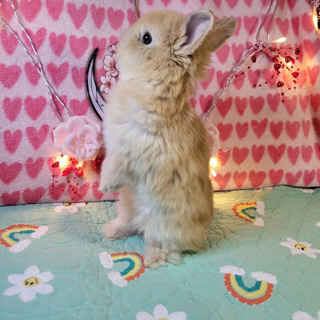 Sprinkles : A really happy go lucky bunny, absolute wonderful personality! Will be about 3 lbs and is a hybrid bunny, has the funniest ear radar! $500