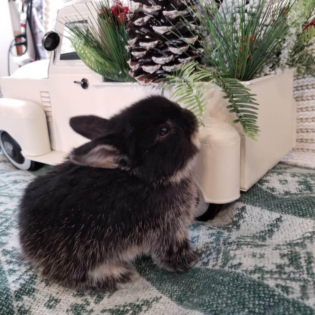 1-12-21: We have affectionally named her batgirl after Batman’s side kick! Cindy runs up and down the hallways and on top of every piece of furniture. Her black cape (ears) dangle in the wind behind her as she patrols the streets of Buntopia! She’s always jumping on my lap or watching me sleep! After a long days work of patrolling the home she settles down to cuddle up.