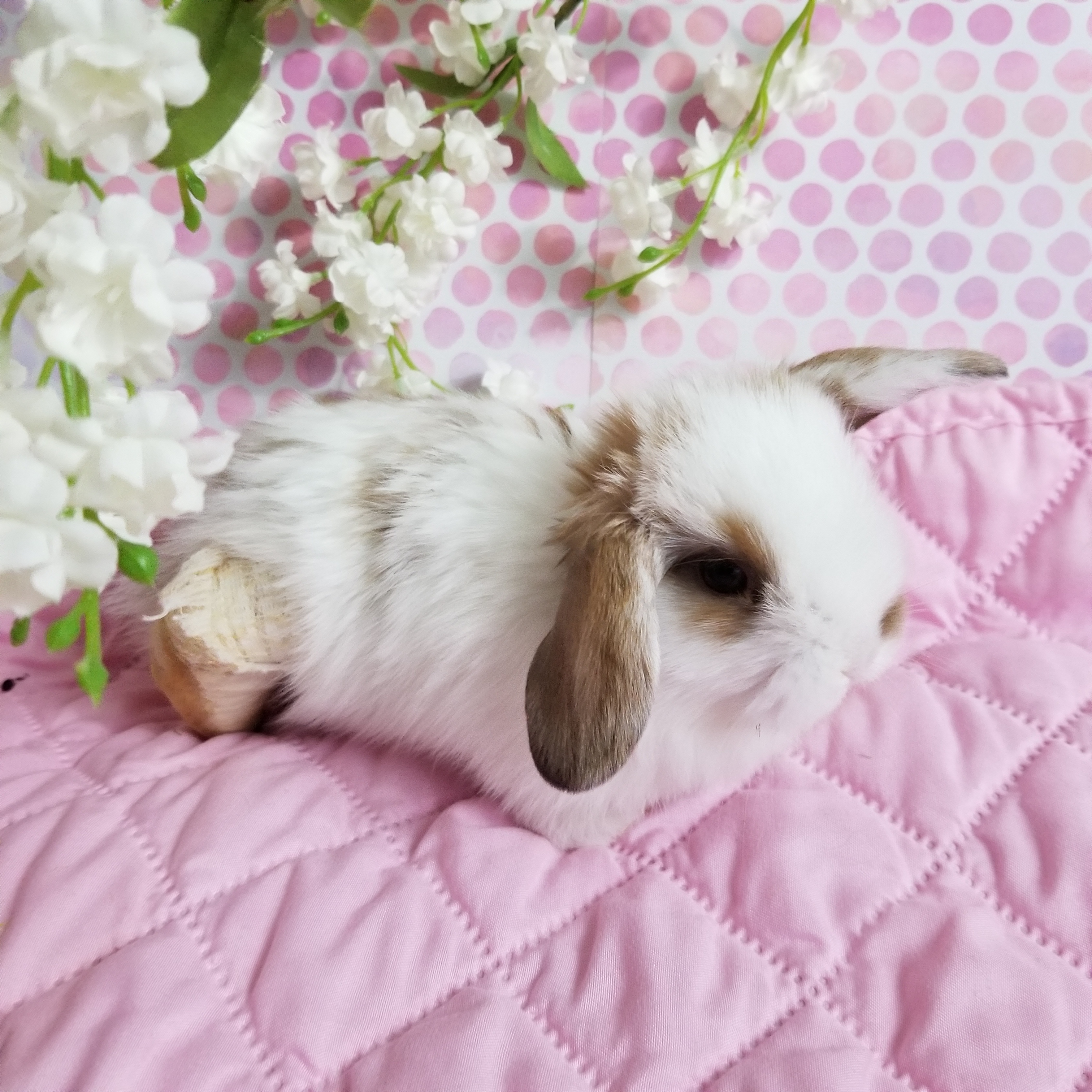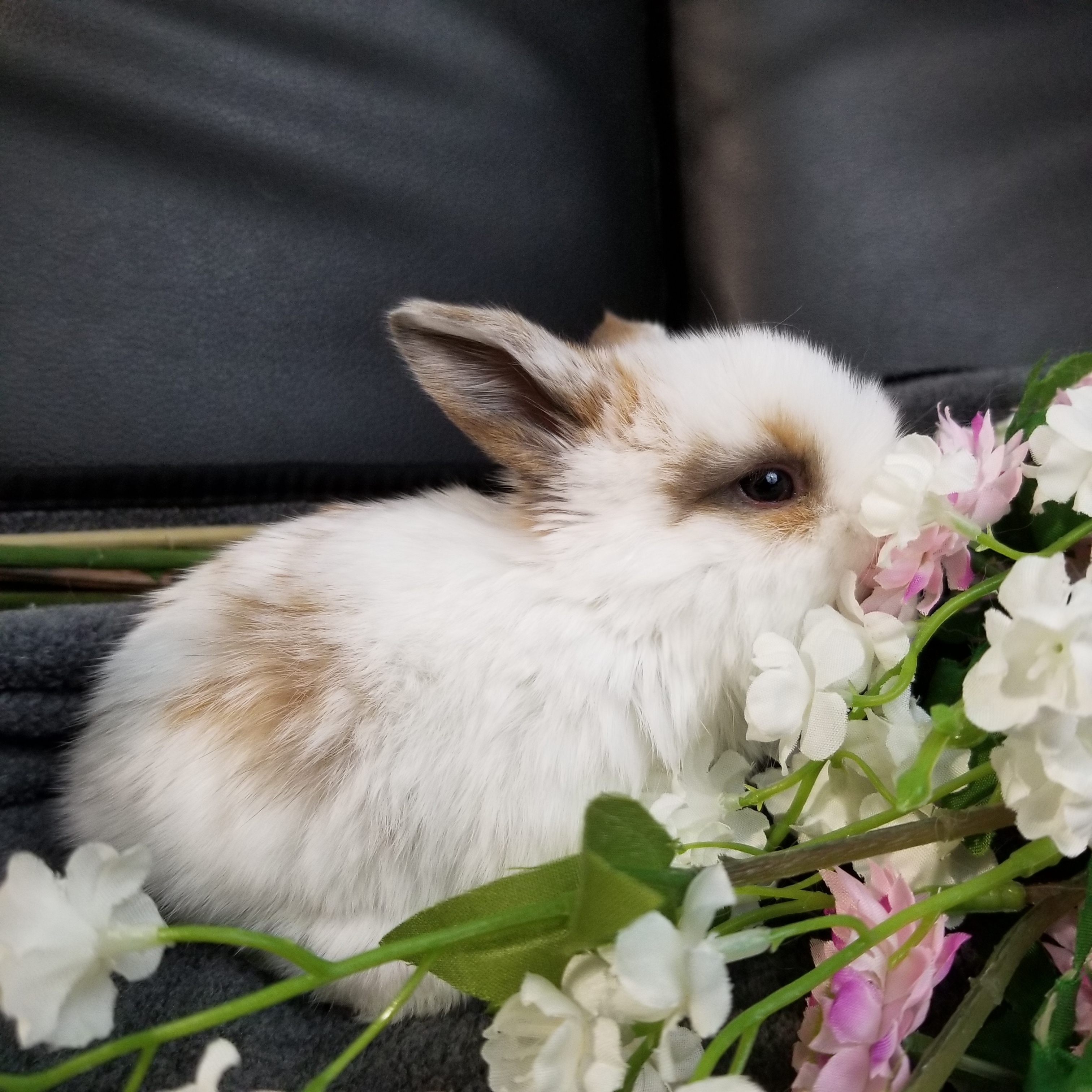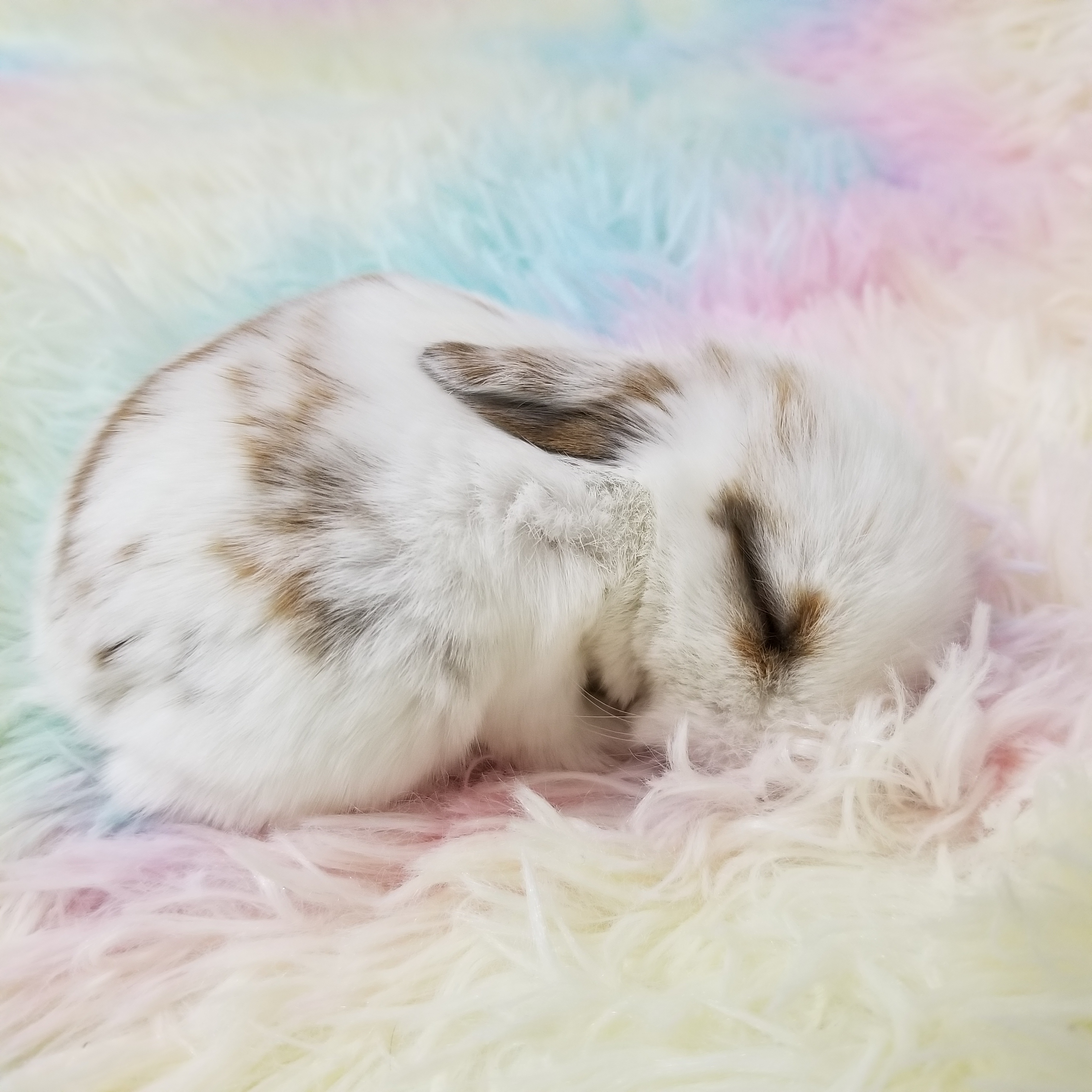 8-28-21: Cosmos is currently under observation, he had a small ankle sprain a few days ago and we hope he recovers swiftly. Right now he is the official pillow for the other buns! We can see he wants to run and play like the other buns but he kept getting his little ankle inflamed so we had to splint him! The splint doesn’t seem to slow his zoomies down what so over.