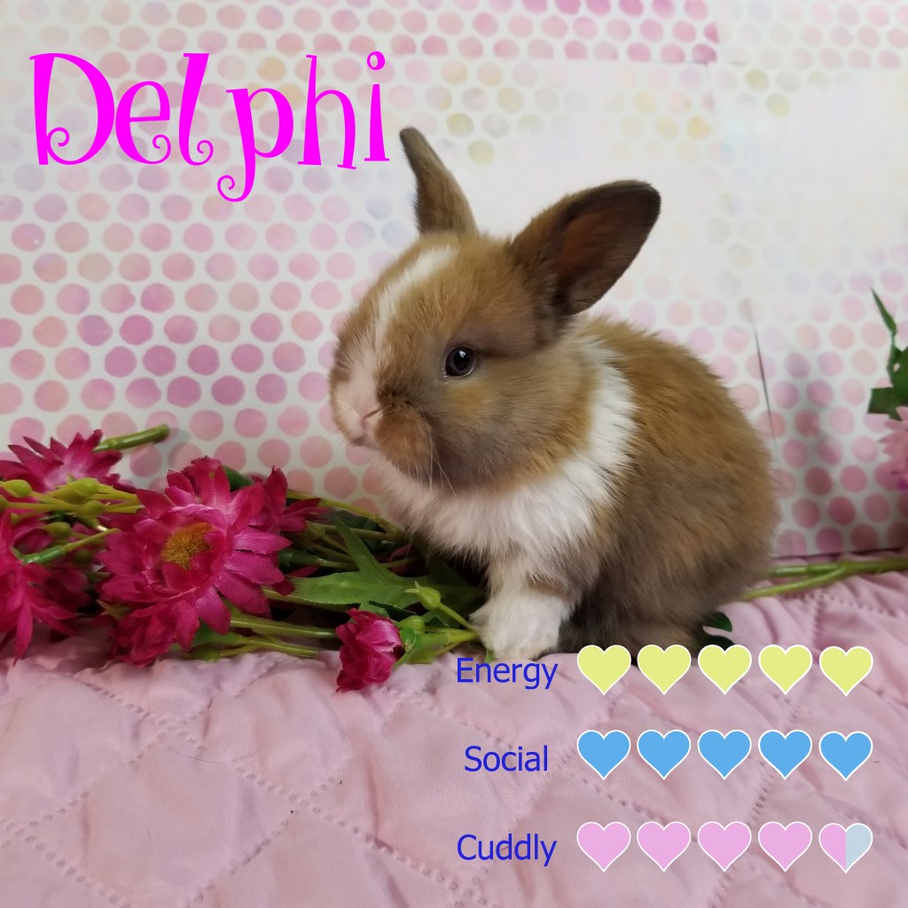 9-4-21: Adventurous and fearless she readily explores every new territory she enters and every new person she sees. Every time a new person stops by Delphi is the only one to go up to them, she boops them with her noes and pulls on their pants or shirt until she gets the attention she desires. She hops up on absolute strangers shoulders, this sort of social behavior is rarely seen in rabbits.