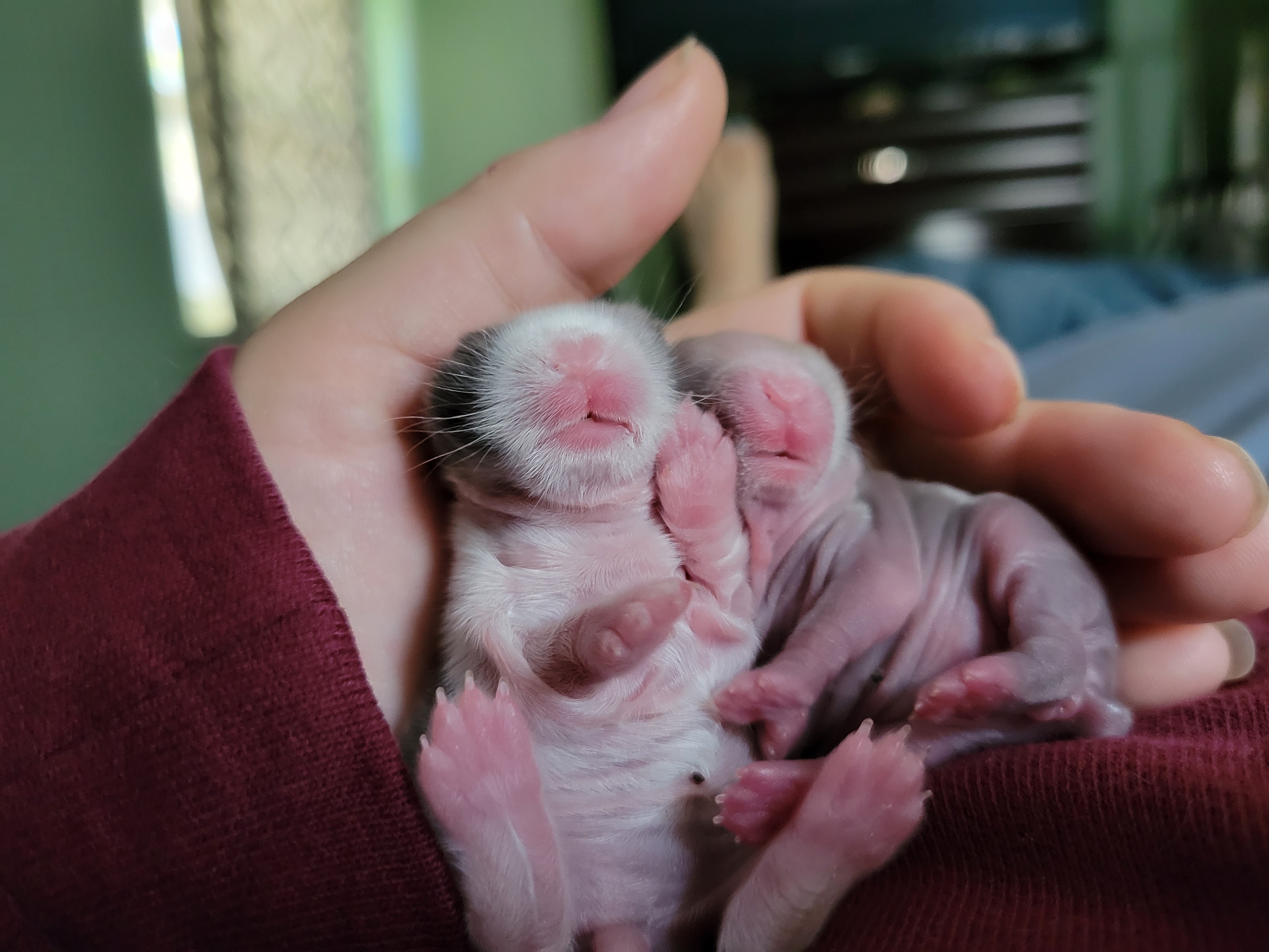 11-2-21: Imbued by the gods its a miracle that little Hercules is alive. His mother Okaja had a difficult time giving birth. Normally a rabbit spend 8-12 mins in labor, she spent 35 mins. All her babies were born lifeless and unbreathing. I rubbed them all vigorously trying to revive them, only one started to breath. But his first day of life wasn’t over yet, it was met with another challenge. As his mother attempted to give him his first milk he was to weak to latch and feed. As she left the nest I noticed he was lifeless again, he suffocated under her weight. By chance I manage to revive him again, he has died twice in one day. Since his mother felt no suckling she figured all her babies were dead, her milk dried out by the 2nd day. For now he is being hand reared and each day he is getting stronger and bigger.