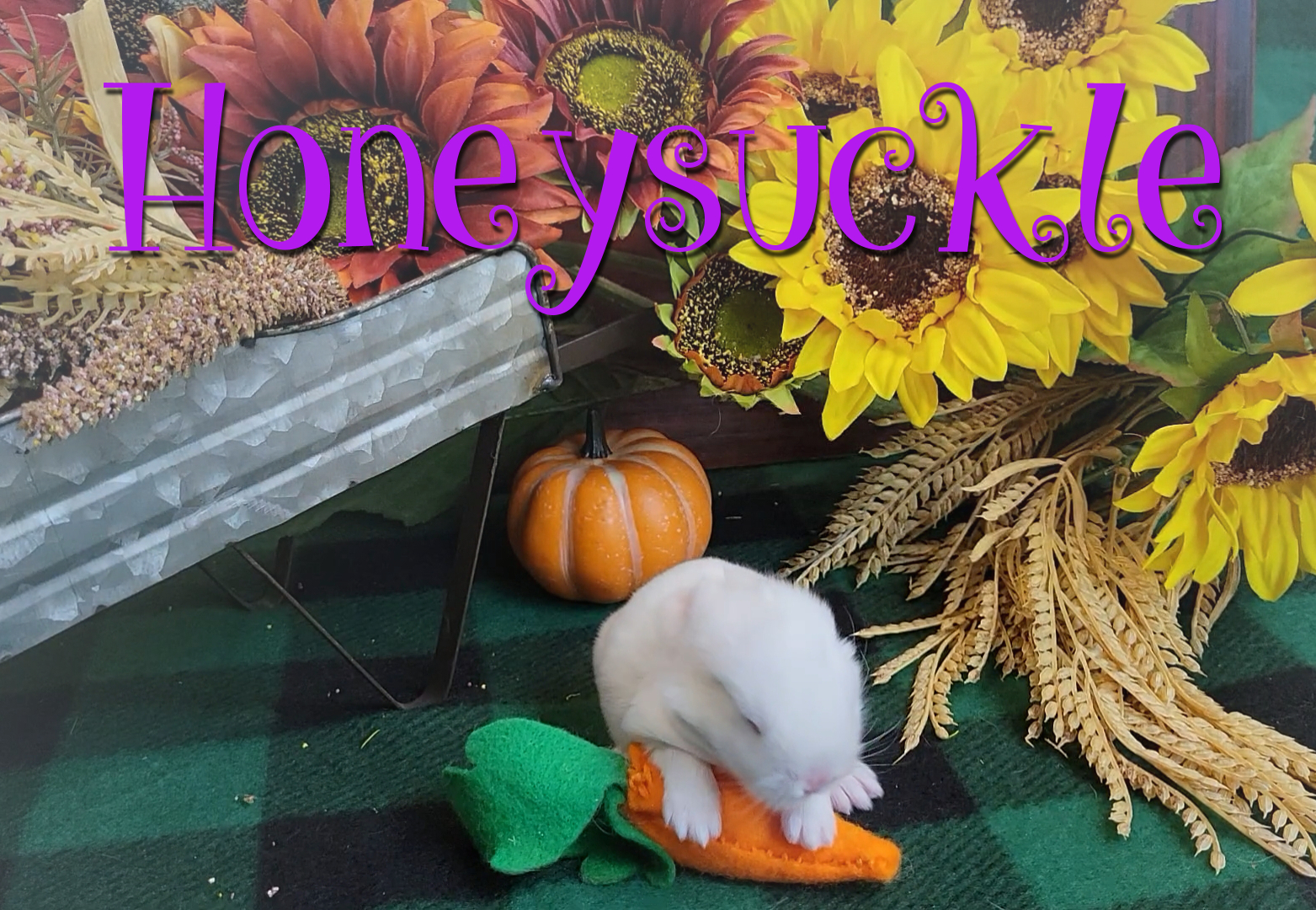 11-23-21: Honeysuckle is by far the sweetest and most docile bunny in Lychee’s litter. When she wants to be held she’ll walk up to your feet and just sit by them, her sublet way of saying she’d like to cuddled. She is very well behaved and very stable; by stable I mean she doesn’t get flighty from sudden movements and loud sounds which makes her excellent for homes with childern. She really is a sweetheart.