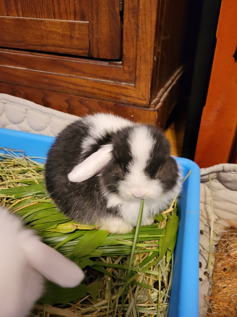 1-12-21: Now 7 weeks old we know so much more about him! It took a while for our little man to develop into the cuddlybun he is today! He’s become super social and happily sits in peoples laps, he loves to be pampered and given all the attention in the world! The best part is he is ok when you don’t give him attention all the time. Some bunnies can get pretty sulky when you ignore them, not Klause!