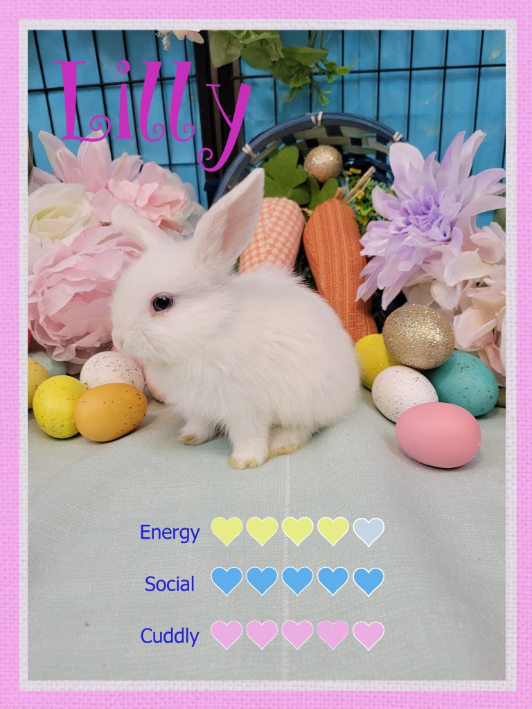5-25-21: Probably not the most flattering picture but I assure you she is a cutie! This bunny gal is full of love and she shows it in an endless sea of kisses. It’s rare to come across a super kissy (affectionate) bunny, I’d say 1 out of 20 bunnies end up like this. You can not go wrong with this girl everyone she meets she showers in endless adoration only once in a blue moon do I end up with a bunny with a personality like hers. Every morning she greets the cuddly buns team and follows us around the house, at night she sleeps in the hallway waiting for us to wake up.