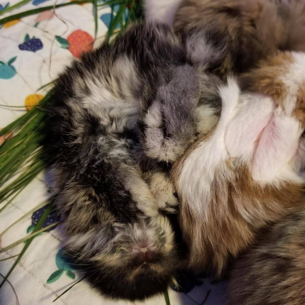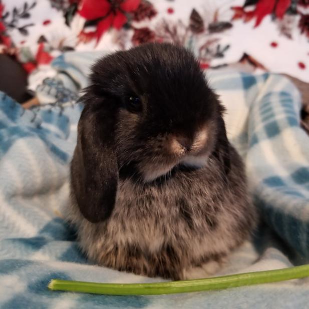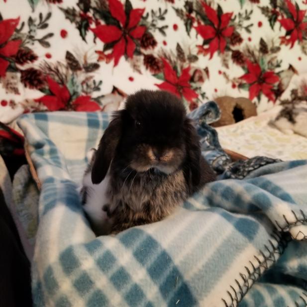 12-29-21: I laugh every time I see her sweet little face. Maybe it’s just the way she stares at me from across the room when she wants something. She’s pretty darn great at keeping herself entertained which might make her a better solo bunny than most though he have started to see her do social grooming so I do think she may want a companion in the future. I do find myself going to her for attention than her coming to me, this may just be because she gets all the attention she needs from the other bunnies in the colony. Mini’s babies do tend to be heavily on the social spectrum.