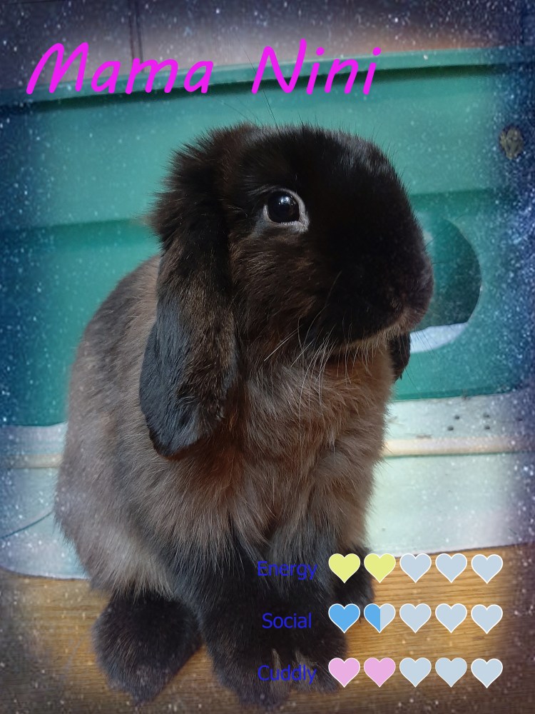 Handleability: Can be picked up but is not a fan of excessive handling and will kick if you try to flip her. Ever since she was a baby she never liked being held, but it’s part of my belief that every bunny should be easy to handle enough so you can clip their nails and brush the loose fur off their bellies for it is in the best interest of their health.