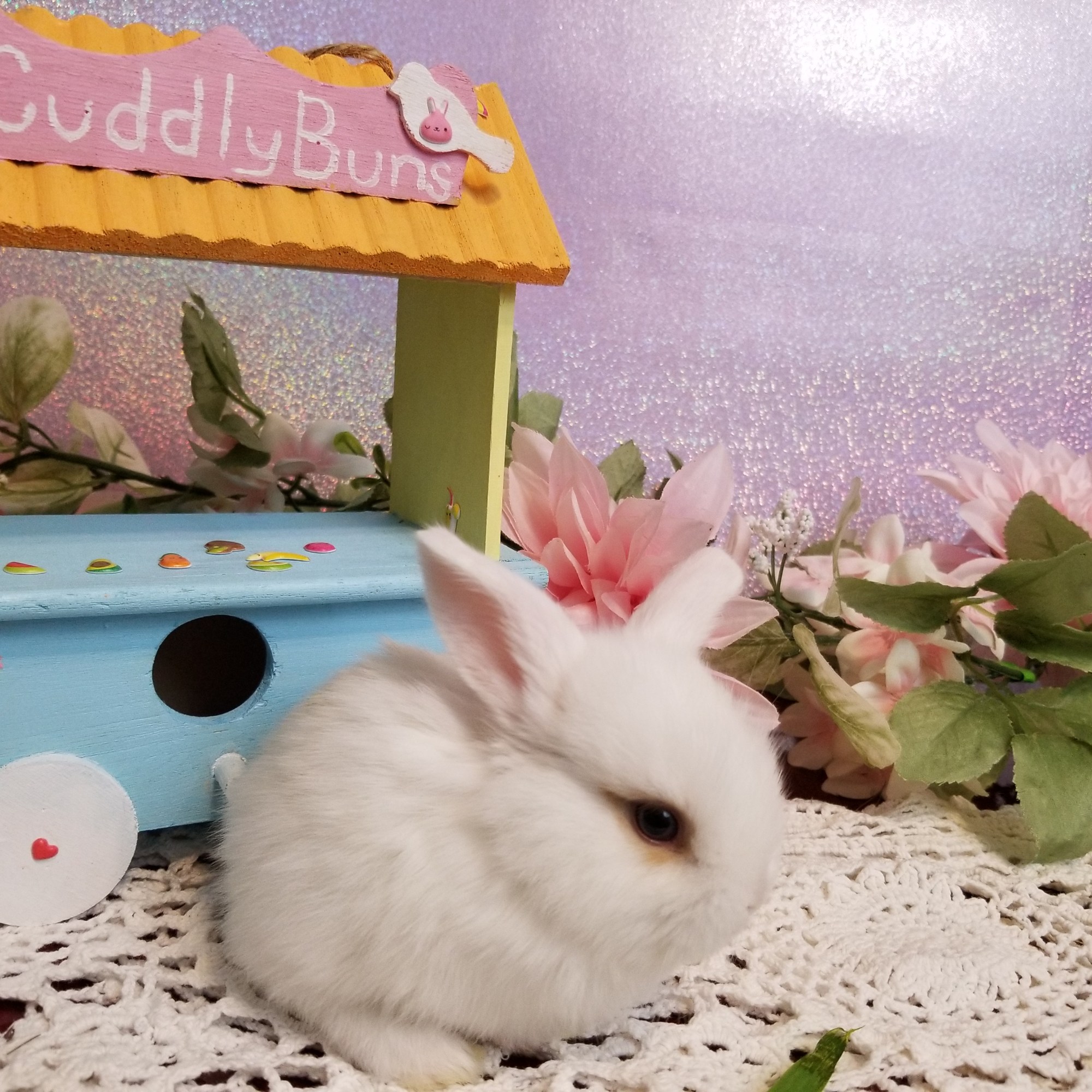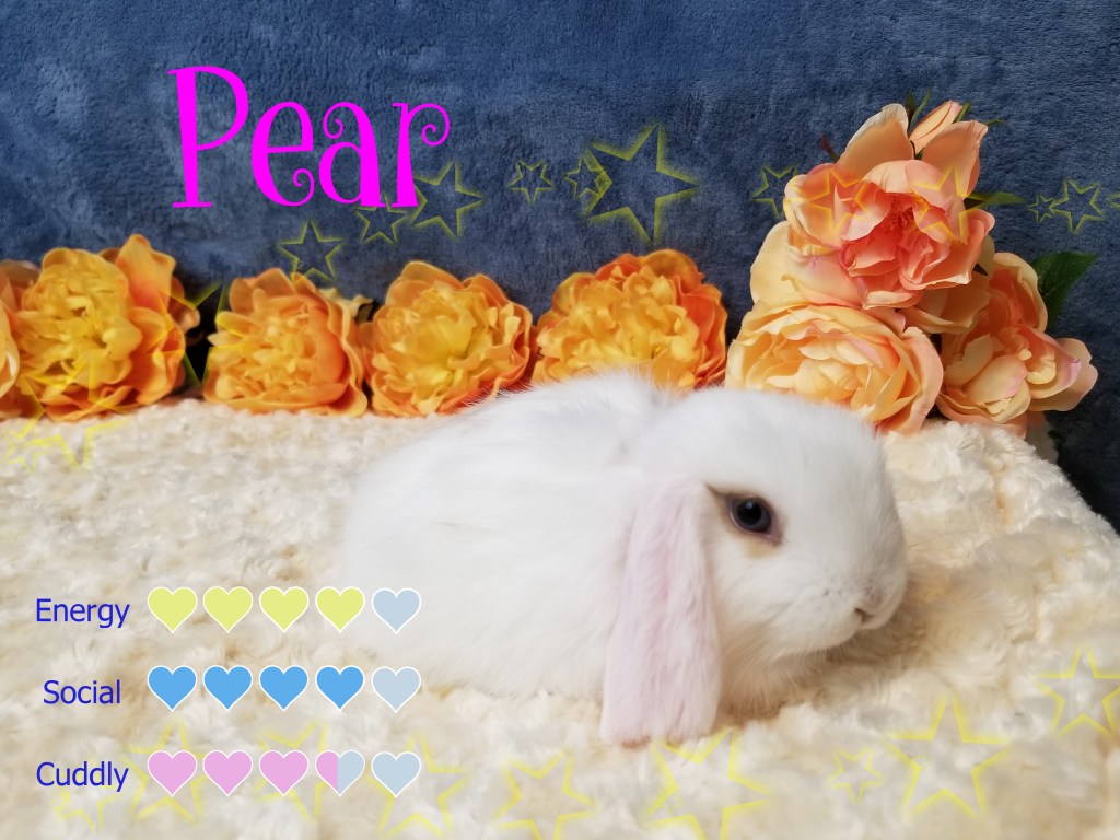 Cuddle Factor: Her preference for cuddle time might be more like interactive play time. She’s highly food motivated and clever, making her a great bunny to train. May even do well on the leash for walks if trained young.