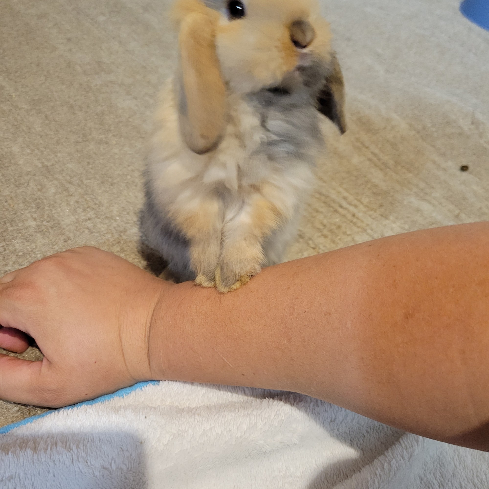 5-20-21: This little guy has turned into a climber. He climbs couches, and people alike! It’s hard to say no to him when he gives you bunny beg face while standing on your shoulder. Anything but shy everyone is his playground.